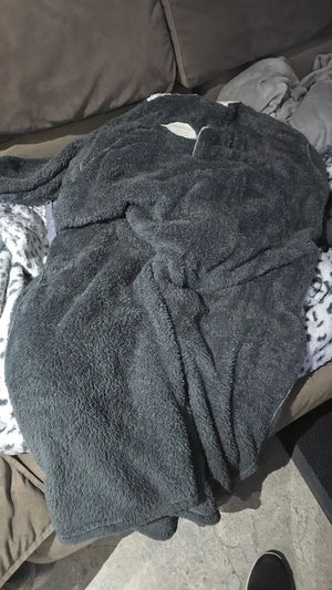 Der Mega-Kapuzenpulli hält Sie mollig warm, selbst beim längsten Filmabend. Die dicke Sherpa-Innenseite schützt vor Kälte, sodass Sie sich vollständig entspannen können.