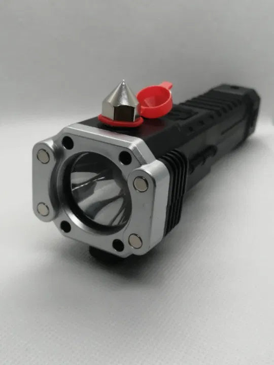 Sie kombiniert Taschenlampe, Notfallhammer, Powerbank und einen magnetischen Fuß für freihändiges Arbeiten.